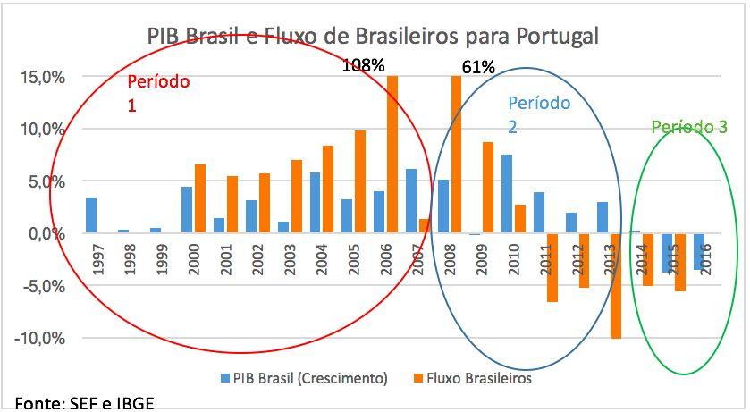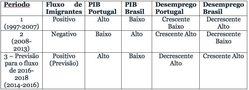 O que esperar então do fluxo migratório a partir de 2016, explicado em parte sobre o desempenho das economias portuguesa e brasileira a partir de 2014? Talvez o período 3 seja o que ofereça sinais mais claros: a economia portuguesa em franca expansão, com o desemprego em nítida trajetória de queda; a economia brasileira, ao contrário, sofre o maior período de contração desde que a série de PIB brasileira começou a ser calculada, em 1947, e o desemprego mais que duplicou em menos de dois anos. Se depender apenas destes fatores, assistiremos nos próximos 3 anos a uma nova alteração do fluxo de imigrantes brasileiros para Portugal de negativo para positivo.